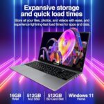 The video showcases the product in use.The video guides you through product setup.The video compares multiple products.The video shows the product being unpacked. 15.6″ FHD Windows 11 Laptop – 16GB RAM 512GB SSD Merchant video