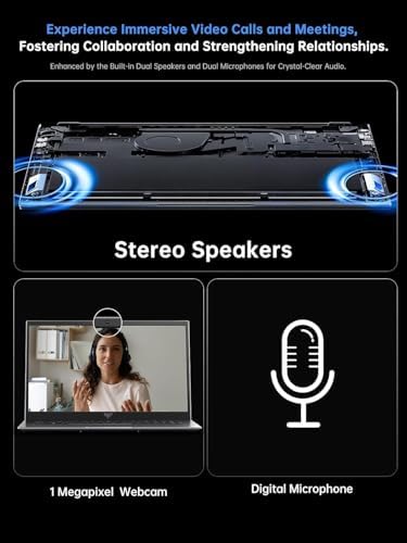 【15.6″ Full HD IPS Display and Dual 1.5W Speakers】TX15 Laptop Dive into sharp, vibrant visuals on a spacious 15.6-inch IPS screen boasting 1920×1080 resolution and 60Hz refresh rate. Dual 1.5W speakers deliver crisp audio for video calls or music, while the DMIC microphone captures clear voice input. The responsive all-in-one touchpad and 1MP webcam round out a user-friendly setup.Perfect for multitasking, streaming movies, or editing photos with wide 180° viewing angles and vivid colour accuracy.