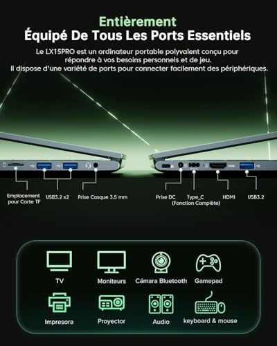 【Full HD IPS Display with WIFI 6.0】LX15pro Laptop Dive into sharp, 15.6-inch 16:9 IPS screen boasting 1920×1080 resolution and 60Hz refresh rate. Perfect for multitasking, streaming movies, or editing photos with wide 180° viewing angles and vivid colour accuracy. Notice:Equipped with WiFi 6.0, compatible with 2.4GHz and 5GHz frequency bands, the transmission rate is nearly 3 times that of WiFi 5. Entertainment work no longer requires waiting for annoying refresh times.