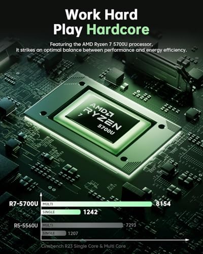 【AMD Ryzen 7 5700U Processor】Speed Meets Efficiency, ACEMAGIC LX15 PRO Tackle daily tasks effortlessly with the AMD Ryzen 7 5700U CPU processor with 8 cores and 16 threads up to 4.3GHz, (MULTI Running points 8152 / SINGLE Running points 1242). Ideal for office work, light gaming, and seamless multitasking without lag.
