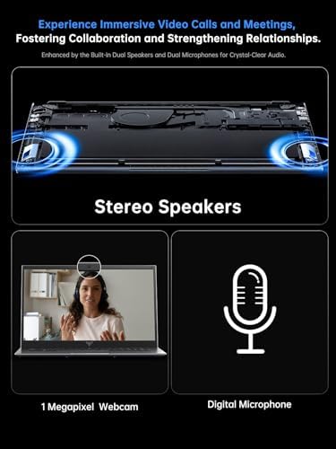 【Enhanced Multimedia Experience】Dual 1W speakers deliver crisp audio for video calls or music, while the DMIC microphone captures clear voice input. The responsive all-in-one touchpad and 1MP webcam round out a user-friendly setup.