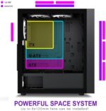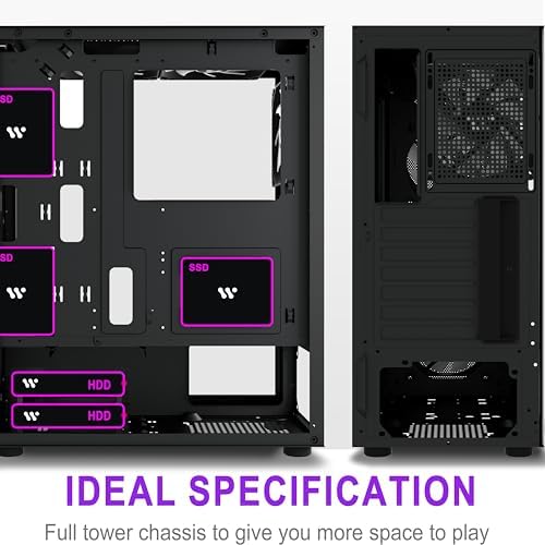 Large Space ATX Tower Desktop Computer: Meets the installation requirements of over 98% of customers. The gaming case offers enough space to easily install multiple 360mm drains. Provides enough space for cable management in the chassis, multiple HDD mounting slots, large storage capacity of up to 3* HDD drives and 3* SSDs.
