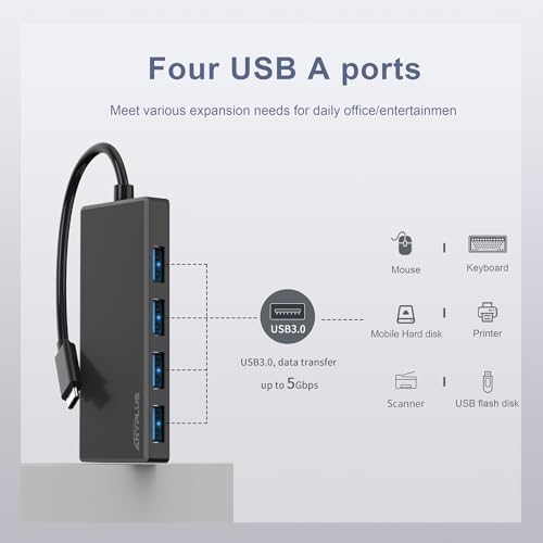 【Plug and Play】The USB C Splitter converts your computer’s type c ports into 4 USB-A ports.The USB Hub 3.0 supports 4 ports to work at the same time and is heat resistant for long lasting durability. USB-C Hub can be plug and play, no driver is needed, providing you with maximum convenience.