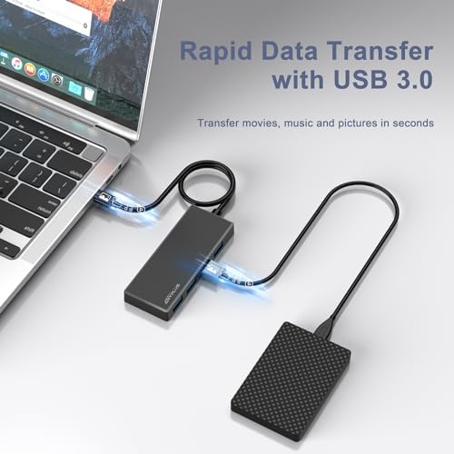 【High-Speed Data Transfer】The USB C Hub supports up to 5Gbps transfer rate, which can synchronize data for you in seconds and help you work easily.(Note: The maximum output current supported by USB Hub is 900mA, which is not suitable for charging devices.)
