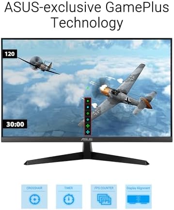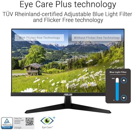 ASUS VY249HGR Eye Care Gaming Monitor – 23.8 inch FHD (1920x1080), IPS, 120Hz OC, SmoothMotion, 1ms MPRT, Adaptive Sync, Eye Care Plus, Blue Light Filter, Flicker Free, antibacterial treatment