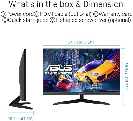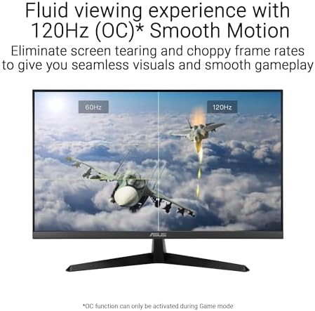 ASUS VY249HGR Eye Care Gaming Monitor – 23.8 inch FHD (1920×1080), IPS, 120Hz OC, SmoothMotion, 1ms MPRT, Adaptive Sync, Eye Care Plus, Blue Light Filter, Flicker Free, antibacterial treatment