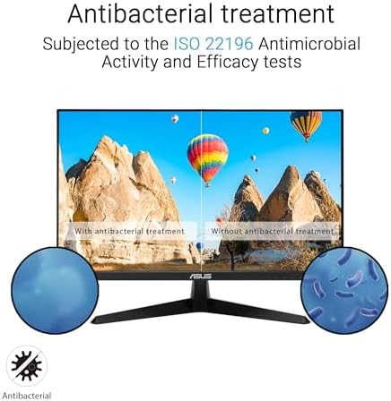 23.8″ FHD IPS panel with 120Hz(OC) refresh rate for smooth video viewing and casual gameplay SmoothMotion technology and 1ms MPRT eliminate tracing and ensure crisp and clear video playback and daily usage Adaptive Sync delivers fluid, artifact-free visuals at any frame rate Proprietary long-lasting antibacterial treatment inhibits the growth of bacteria and fungi on the monitor bezels and hotkeys Eye Care Plus technology includes Color Augmentation mode helps users with color-vision deficiency better distinguish between colors, and Rest Reminder helps users manage screen time ASUS DisplayWidget Center lets users easily change monitor settings via an intuitive interface