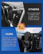 Upgrade New Design—Different from ordinary cell phone holders, ours has an integrated design of touchscreen and phone stand, which does not block the air outlet. Besides, the base mounted on the screen can adjust the height of the phone mount.