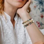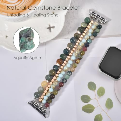 CAGOS Natural Stone Beaded Bracelet Compatible with Apple Watch Band 38mm/40mm/41mm 42mm/44mm/45mm Women Series 9 8 7 SE Series 6 5 4 Fashion Dressy Boho Stretchy Handmade Crystal Strap for iPhone iWatch Bands Series 3/2/