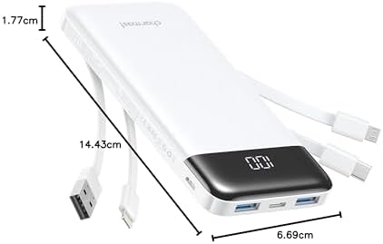 ⚡【Power Bank with Built in Cable X 4】This power bank equipped with 3 different type cables cover almost all the Micro USB/USB C/iPhone users needs.And 1 USB A port for recharging the power bank itself.With it’s own cables, there is no more cable mess and charge in a more convenient way.