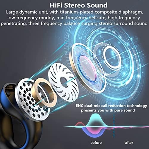 ✨ Unique Ear-clip Style : New ear-clip earphones use ergonomic design, stably clipped on your ears, and touch your ears in such a small area that you will feel free and comfortable. Comfortable and lightweight,there is no burden even if you wear the earphone for a long time,the ear will not feel pain,and it is non-slip.No need to worry about the earbuds falling off.