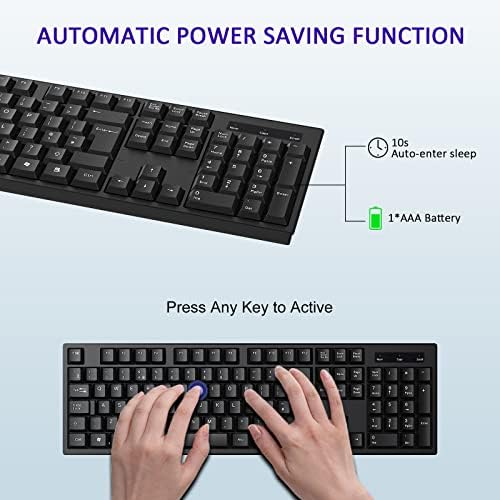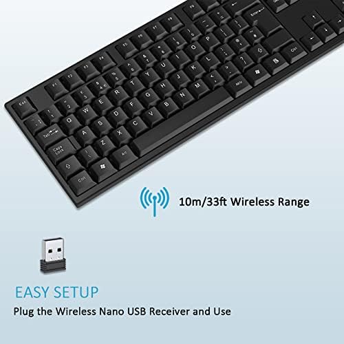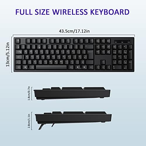 cimetech 2.4G Wireless Keyboard, QWERTY UK Full-Size Layout, USB Computer Keyboard with Numeric Keypad & Ergonomic Keys for Desktop/PC/Laptop/Surface/Smart TV/Notebook and Windows – Black