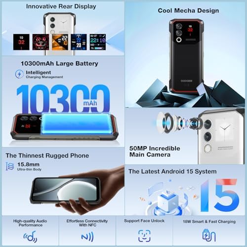 Home Smartphones DOOGEE Blade10 Max Rugged Smartphone Android 15, 32GB+256GB/2TB Rugged Phone, 10300mAh Battery, 1.54” Touch Back Screen, 4G Dual SIM-free&Unlocked Mobile Phones, 50MP AI Camera/3 Card Slots/NFC, Black