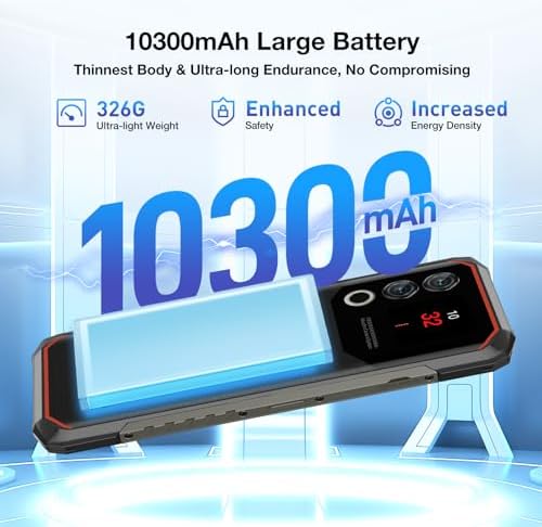 [10300mAh Battery & Military Protection: Built for Extremes] Conquer adventures with Blade10 Max rugged smartphone’s colossal 10300mAh battery delivering 2-3 days of moderate use, enhanced by 18W fast charging and OTG reverse charging to transform your phone into an emergency power bank. All encased in an IP68/IP69K waterproof, 1.5m drop-proof chassis that balances ruggedness with surprising portability at just 15mm thin and 328g.