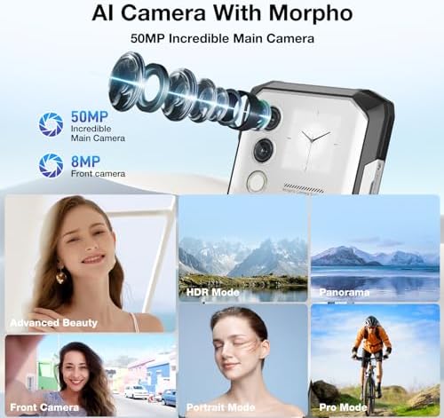 [Pro-Grade Camera System: Capture Any Scene] Shoot stunning photos in any light with Blade10 Max rugged phone’s 50MP main camera’s advanced HDR and Night Mode algorithms. Record silky 1080P videos or unleash creativity with Pro Mode, AI Beauty filters, and unique Morpho tilt-shift effects, complemented by an 8MP front camera for crystal-clear video calls.