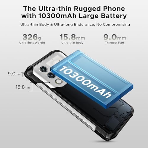 DOOGEE Blade10 MAX Rugged Smartphone with 1.54" Rear Screen, 20GB+256GB Android 14 Rugged Phone, 90Hz, 50MP AI Camera, 10300mAh Battery, 4G Dual SIM Free Unlocked Smart Phone, 3 Card Slots/NFC/IP69K