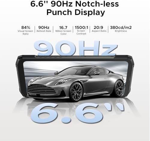 【6.6″HD+ 90Hz Display& 50MP AI Main Camera】: DOOGEE Blade20 Turbo android phone flaunts a 6.6″HD + IPS 90Hz Waterdrop screen, which with high – end display offers a sharp, vivid, and incredibly smooth visual experience. The Rugged mobile phones features 50MP AI main camera, 2MP Macro camera which captures every detail of life and 16MP Front Camera can leaves clear memories. Support Google Intelligent Recognition and AI Recognition, make life simpler and smarter.