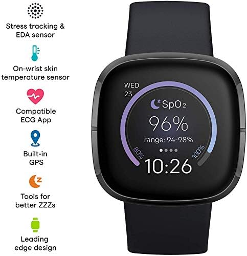 EDA Sensor & Stress Management: The on-wrist EDA Scan app for Sense detects electrodermal activity, which may indicate your body’s response to stress so you can better track and manage it.