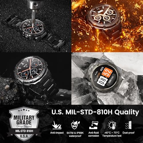 ➤【Military Standard Quality】HIDAMEL smart watch built to military standards,having successfully passed 15 military-grade tests, including temperature, high altitude and low pressure, dust, salt spray and liquid contamination. The rugged smart watch for men is not only tough but also embodies fortitude and resilience. Suitable for any outdoor sports and harsh working environments.