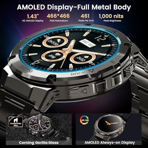 HIDAMEL Smart Watch,Smart Watch for Men,Built in GPS,480mAh Extra-large Battery,50M Waterproof,Full Metal Body Rugged Smartwatch,1.43" AMOLED Display, Compass, Altitude, and Air Pressure