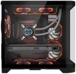 iONZ Flow Mini – PC Gaming Case, Tempered Glass – Mini Tower, Dual Dynamic Compact ITX | Front I/O USB 3.0. Includes 3RGB Fans – Black. a New Smaller Size ionz FLOW suporting a 240 mm Watercooler on Top