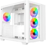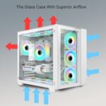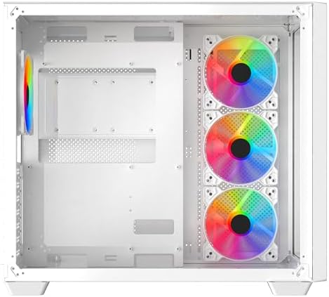 Home PC Parts iONZ KZ-Z – PC Gaming Case, ATX Mid Tower – Dual Chamber Dynamic Advanced Series, White Tempered Glass | includes 4 x ARGB Fans