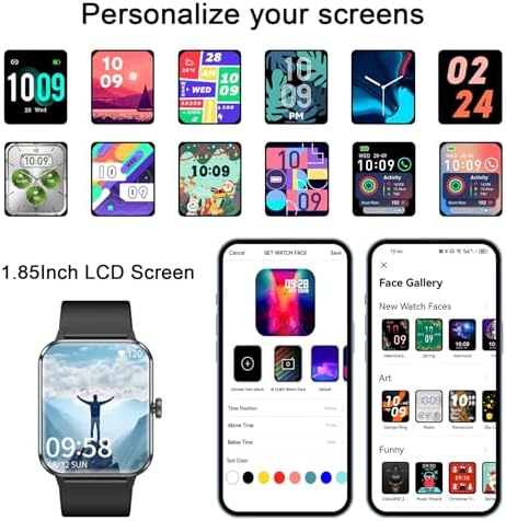 IOWODO Smart Watch for Men Women, 1.85" Smart Watch Make/Answer Calls, Fitness Watch with Message Notifications/Stress/Sleep Monitor, IP68 Waterproof 100 Sport Modes Smartwatch for Android iOS