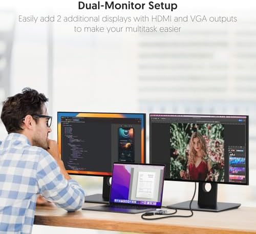 Easily add two extra displays through any computer’s USB 3.0 port using the HDMI/VGA connectors