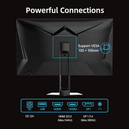 [Multiple Connectivity and Tilt Adjustment] This gaming monitor is equipped with 2x HDMI2.0, 1x DP1.4, 1x headphone jack and DC port for enhanced gaming connectivity. The tilt adjustment range of -5° to 15° allows you to choose a comfortable angle to reduce your workload. Supports VESA wall mounting (100*100mm)