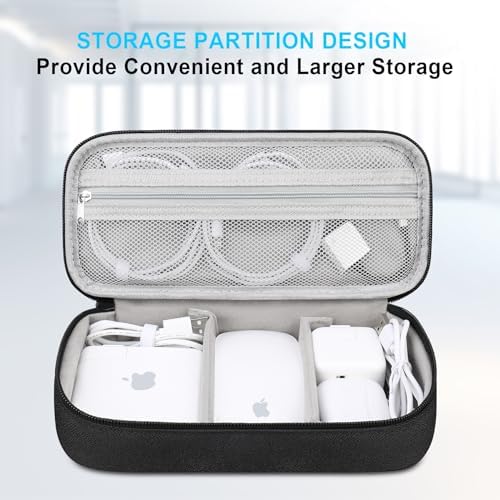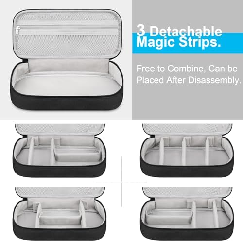 CUSTOMIZABLE LARGE STORAGE SPACE: This electronic travel Organizer comes with 3 Magic Strip Dividers, allowing you to freely size or position the bottom compartment for flexible or optimal Storage Space for your charger, MacBook power adapter, hard drive, power bank…..; Premium Mesh Pockets for cables, cords, hard drives; This Electronics Travel Packing Organizer will keep every item organized and easily findable, no worry about the mess and tangle anymore.