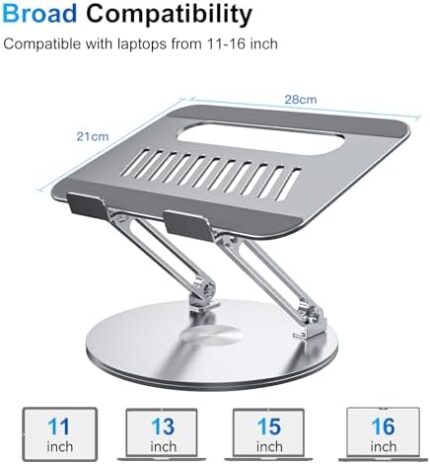 Laptop Stand for Desk with 360° Swivel Base, Multi-Angle Adjustable Laptop Riser for Work, Foldable & Portable Laptop Holder Mount for MacBook Air/Pro, Dell, HP, Lenovo, Notebooks Computer (10”-16”)