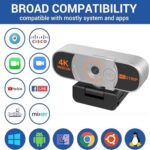 【Plug and Play】The 4k web camera connects to the computer’s USB-A port. Plug and play, no additional drivers required.
