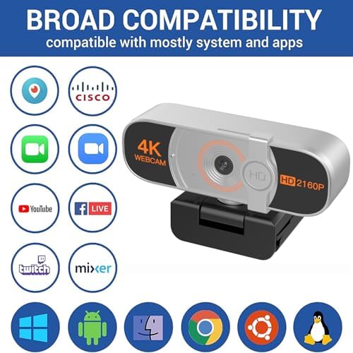 【Wide Compatibility】 The USB camera is compatible with Windows,Mac OS 10.10 or higher,Google Chromebook Version 29.0.1547.70 or higher,Linux(Need to support UVC),etc.The webcam with microphone perfectly fits for Zoom/Skype/Slack/Google Hangouts, etc. and remote learning/teaching/live-streaming platforms like OBS/Twitch/Facebook Live/YouTube Live and more.