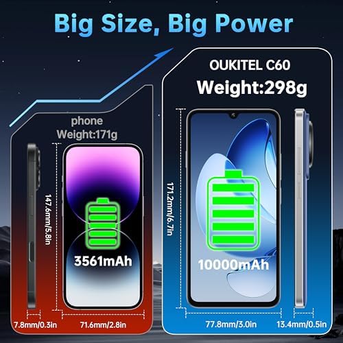 【16GB (4GB+12GB) + 128GB/1TB Expansion】 OUKITEL C60’s innovative memory expansion feature expands memory from 4GB to 16GB (via 12GB virtual memory) for better performance, smoother gaming, and multitasking experience. 128GB built-in storage and 1TB microSD expansion card can easily store all your games and media files. Dual Nano SIM card slots for added convenience (*Please enable 16GB mode in Settings → Memory Expansion → Restart). Perfect for heavy users seeking speed and storage flexibility.
