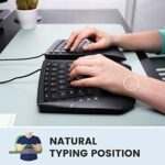 CURVED, SPLIT-KEY DESIGN – Ergonomic keyboard with curved keys and split-key sloped promotes natural arm and hand position while typing. Minimize the discomfort on your shoulders, wrists, and forearms after prolonged use.