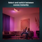 Switch Between Light Scenes – Toggle through four different light scenes by pressing the “Hue” button. Personalise which scene is assigned to each click via the ‘Philips Hue’ app