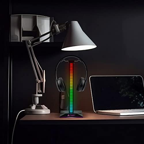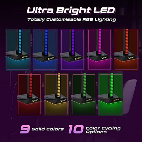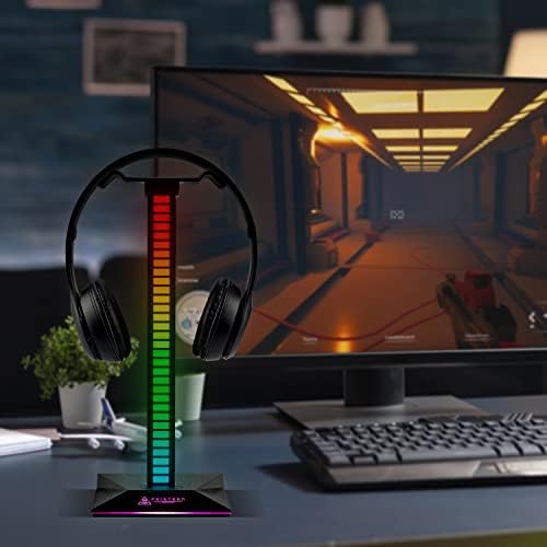 🎮 THE PERFECT GAMING DESK ACCESSORY – Sound-reactive light up design this headphone stand will has built-in led lights that provide a beautiful aesthetic when used with a console or PC gaming set up and keeps your desk clear and your headset safe and secure