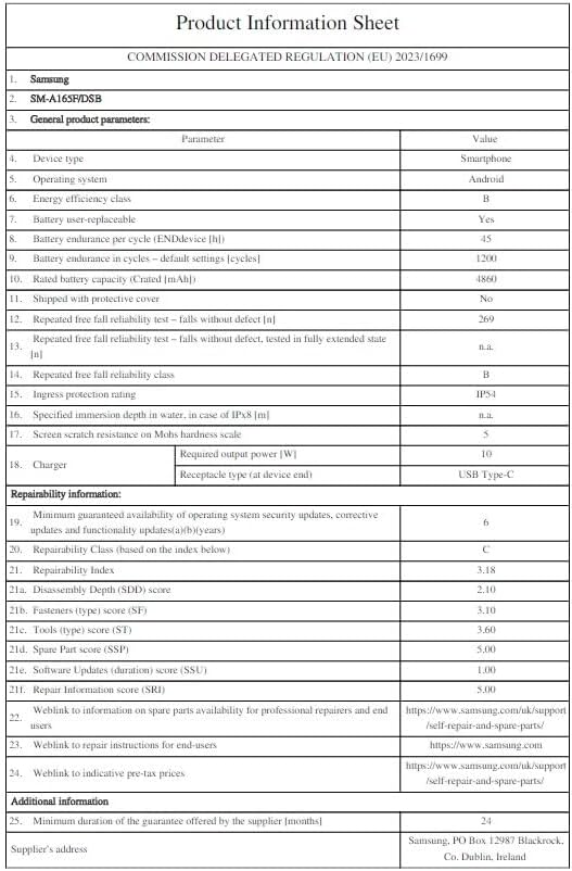 Item model number ‏ : ‎ SM-A165FZKBEUB