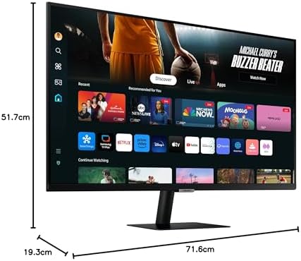 Samsung LS32DM700UUXXU 32″ 4K Ultra HD HDR10 Smart Monitor with Speakers – 3840×2160, USB-C, HDMI, WiFi, Bluetooth, Smart Hub for TV streaming, Catch Up Apps and Gaming Hub