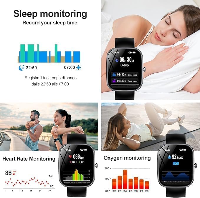 24-Hour Health Monitoring: This activity tracker is equipped with high-precision sensors to monitor health data such as heart rate and blood oxygen around the clock. Automatically analyze sleep quality and generate professional reports. Help you fully understand your physical condition and develop healthy living habits.