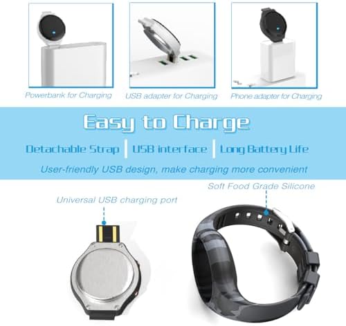 Long Battery Life/ Easy Charging:The watch has a built-inUSB charging head, which can be charged with a USB charger/power bank/ USB charging dock/computer USB port, etc.About 10 – 20 days Working time after a full charge.