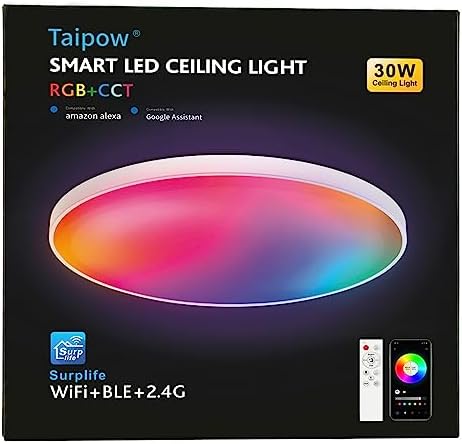 šćSmart Color Changing Ceiling LightćTaipow 30W flush led colour changing ceiling light provides daylight, cool white, warm white, plus 16 million colour of lights, 2700-6500K color temperature and 10% to 100% brightness dimmable to create different types of ambiance. completely suitable for bedroom, kitchen, studyroom, home office, outside porch