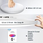 šćCeiling light with remote controlćYou can control the ceiling light from all angles, the maximum distance is 20m. With the remote control, you can control the brightness, color temperature and color of the dimmable led ceiling light more conveniently and quickly. The remote control supports “one-to-many lights” mode, which can turn off the smart ceiling lights in the entrance and room at the same time