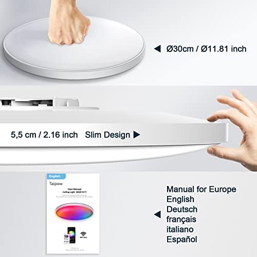 šć100% Satisfaction Guaranteedć Inclusions: Conductive base, Φ33cmx5.5cm LED ceiling light, remote control, British installation manual. If you have any questions during use, please contact our customer service, we will solve your problem within 24 hours, Taipow promises to provide you with satisfactory after-sales service!