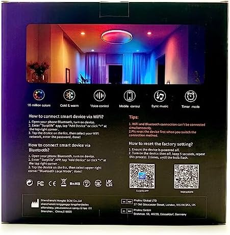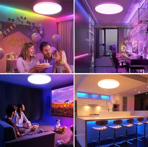 šćFeature Upgradeć This smart ceiling lighting can be controlled by APP for multiple functions, such as: 16 million colors switch, brightness dimmable, color temperature 2700-6500k adjustment, timing function, music mode, sunrise / sunset mode, variety of scene modes, lighting schedule, cloud control, etc. And works with Alexa, Google Home Assistant, IFTTT