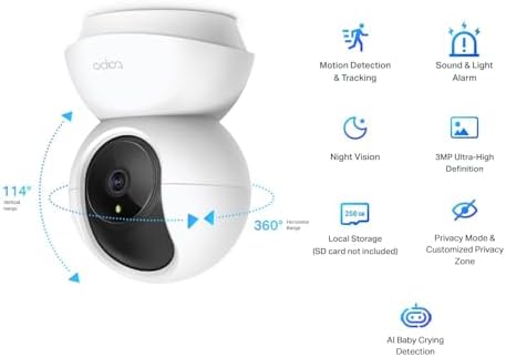 Home Home Tech Tapo C210 2K 3MP Pan/Tilt Indoor Camera House Security Camera, WiFi Camera, No Monthly Fee, AI Detection, Dog Puppy Camera, Baby Camera Monitor, 360° View, Night Vision, Works with Alexa & Google