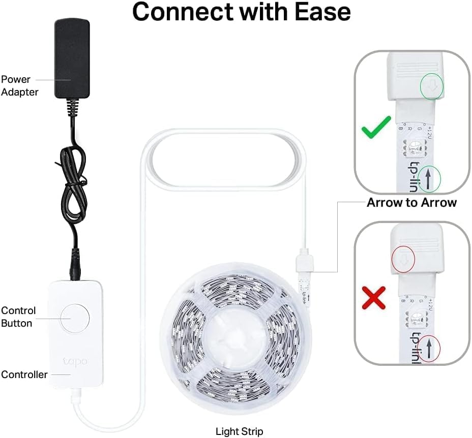 Please make sure the controller is properly and firmly attached to the led strip lights following the arrow directions on the controller and the strip for it to light up.The brightness and colour of the strip may look a little different between the light strips. This is normal and will not affect the basic function of the light strips. Moreover the L900 strip does not have white LED bulb on it. For sync and internet connection issues, please ensure the Tapo app is fully updated from the Phone’s APP store and the firmware of the product is updated via the Tapo app