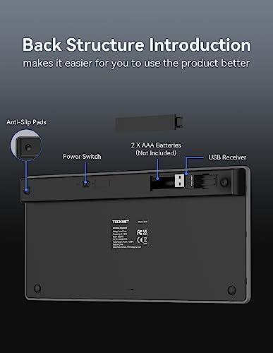 【Plug-and-Play】Insert the 2.4 GHz nano USB receiver (stored inside the battery compartment of the keyboard) into your computer or laptop to use the keyboard instantly
