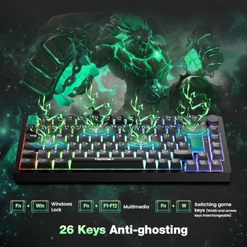 26-Key Anti-Ghosting: The TECKNET keyboard gaming features 26-key anti-ghosting technology, ensuring precise and responsive keystrokes even when multiple keys are pressed simultaneously. Whether executing complex gaming combos or typing at high speed, every command is accurately registered without conflicts, providing a seamless gaming experience