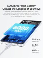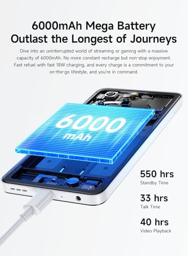 ★ 【6000mAh Mega Battery, Outlast the Longest of Journeys:】Dive into an uninterrupted world of streaming or gaming with a massive capacity of 6000mAh. No more constant recharge but non-stop enjoyment. Fast refuel with fast 18W charging, and every charge is a commitment to your on-the-go lifestyle, and you’re in command. (550 hrs Standby, 33 hrs Talk Time, 40 hrs Video)